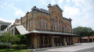 Taking the old highway will lead you through towns with names like Flatonia and Schulenburg. Places that still have town squares that look like this :