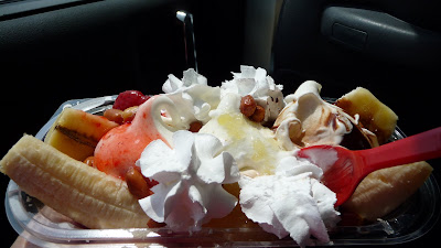 Riding around past cow pastures and windmills with the sun streaming through my window, and eating a banana split. Well, that is one of the best times I've had in a long time.